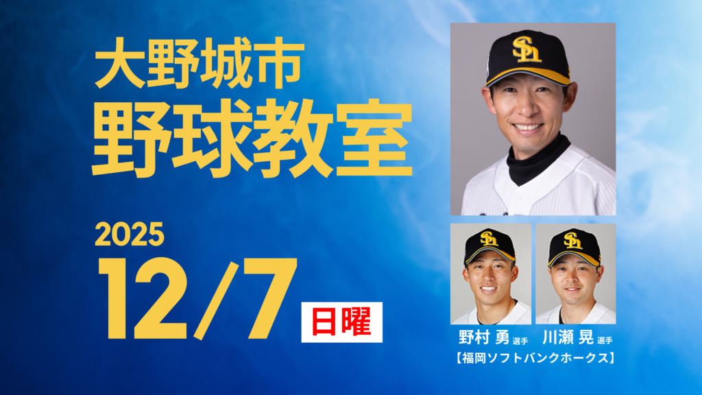 毎年恒例の大野城市野球教室が 12月1日 10時〜 大野城市総合公園市民球場にて開催されます。 今年はなんと福岡ソフトバンクホークスの次世代スター【慶應3兄弟】が大野城市に集結します。 大野城市の少年少女が対象となりますが、観覧見学は無料となりま...